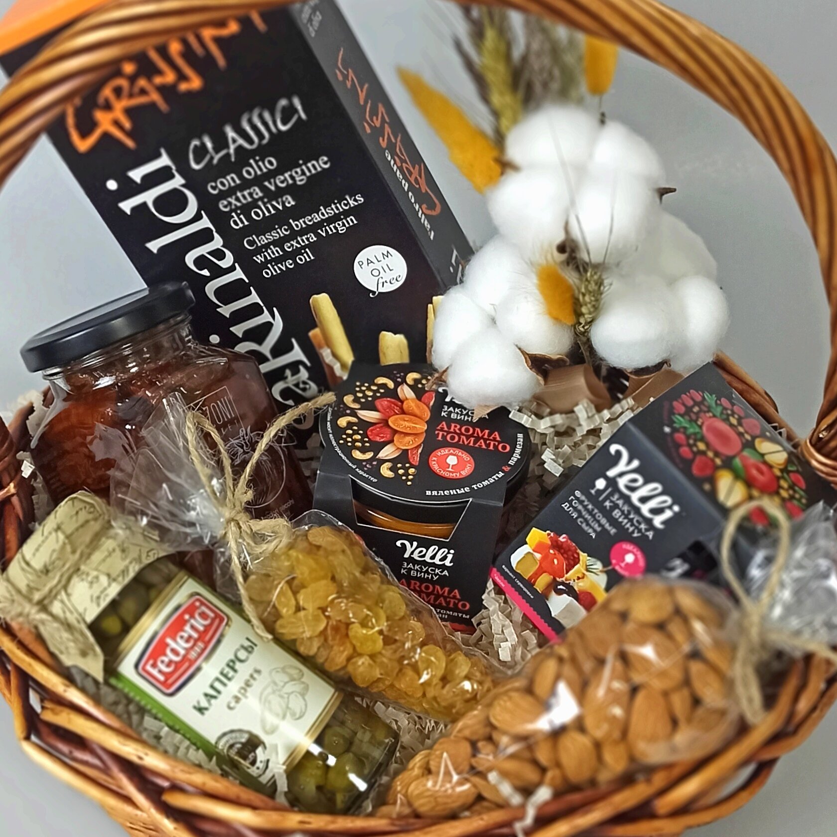 Купить Подарочная корзина с деликатесами: каперсы, томаты вяленые, орехи, закуски к вину и сыру с доставкой по всей России. Подарочная корзина с деликатесами: каперсы, томаты вяленые, орехи, закуски к вину и сыру: сравнение цен, характеристики, фото, актуальное наличие и цены.