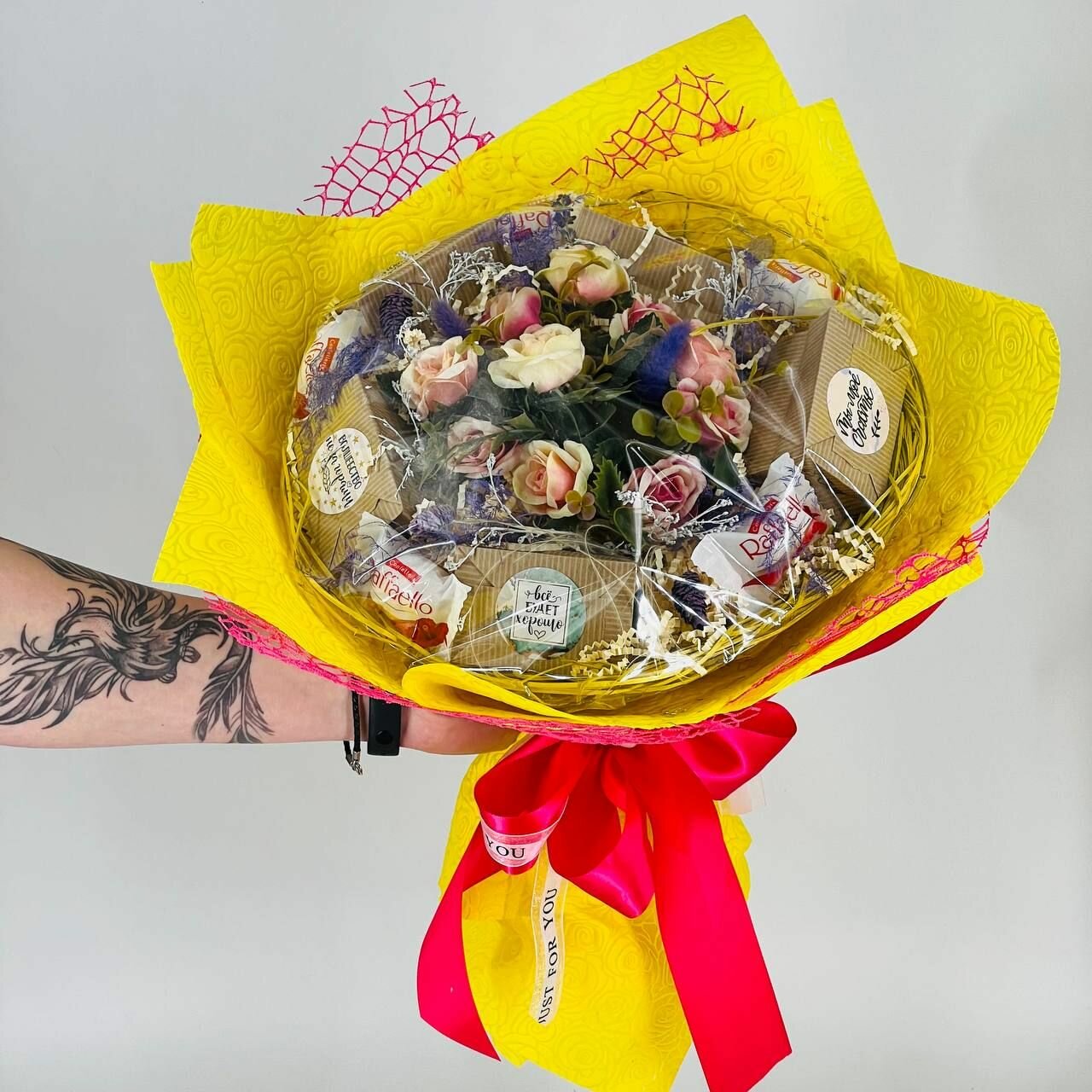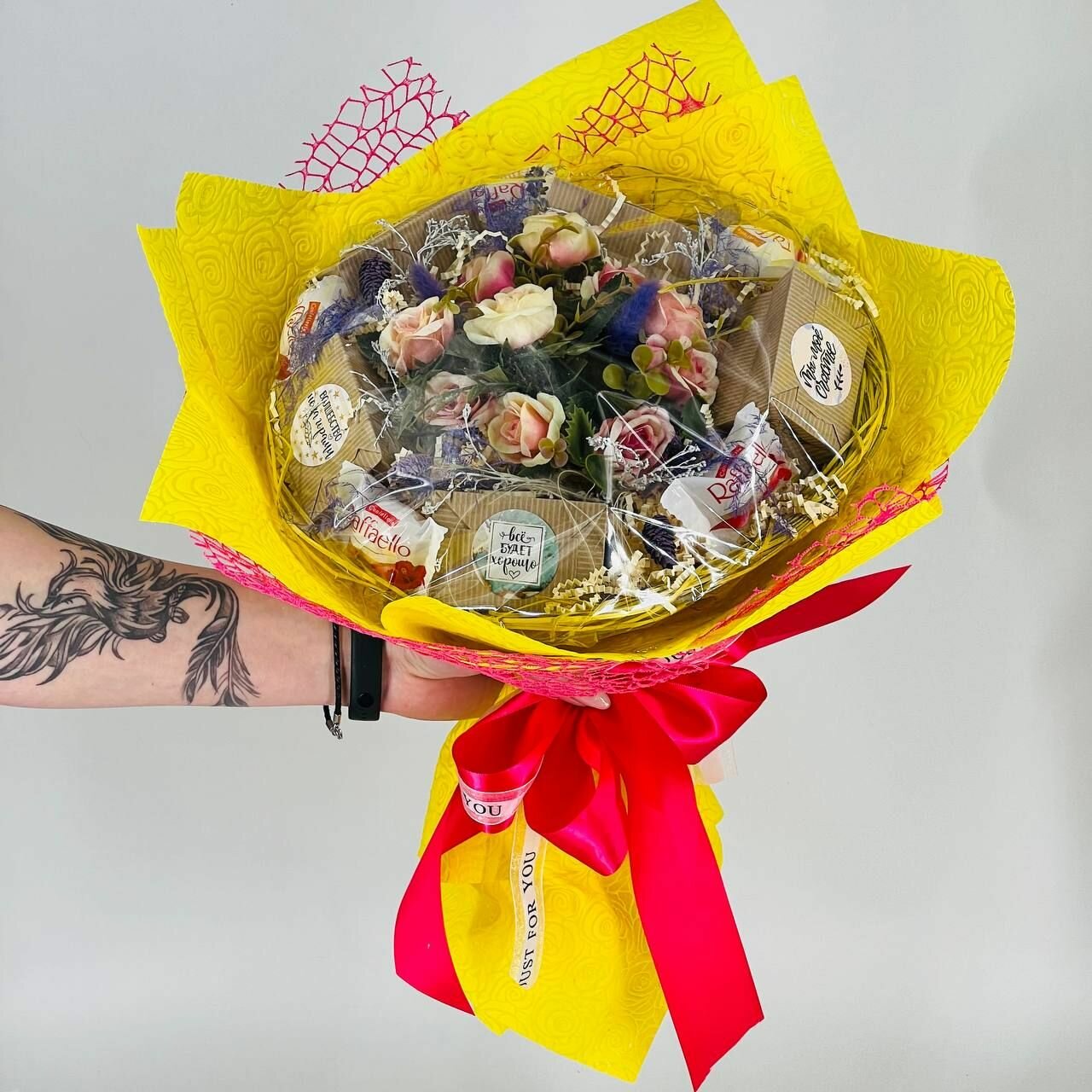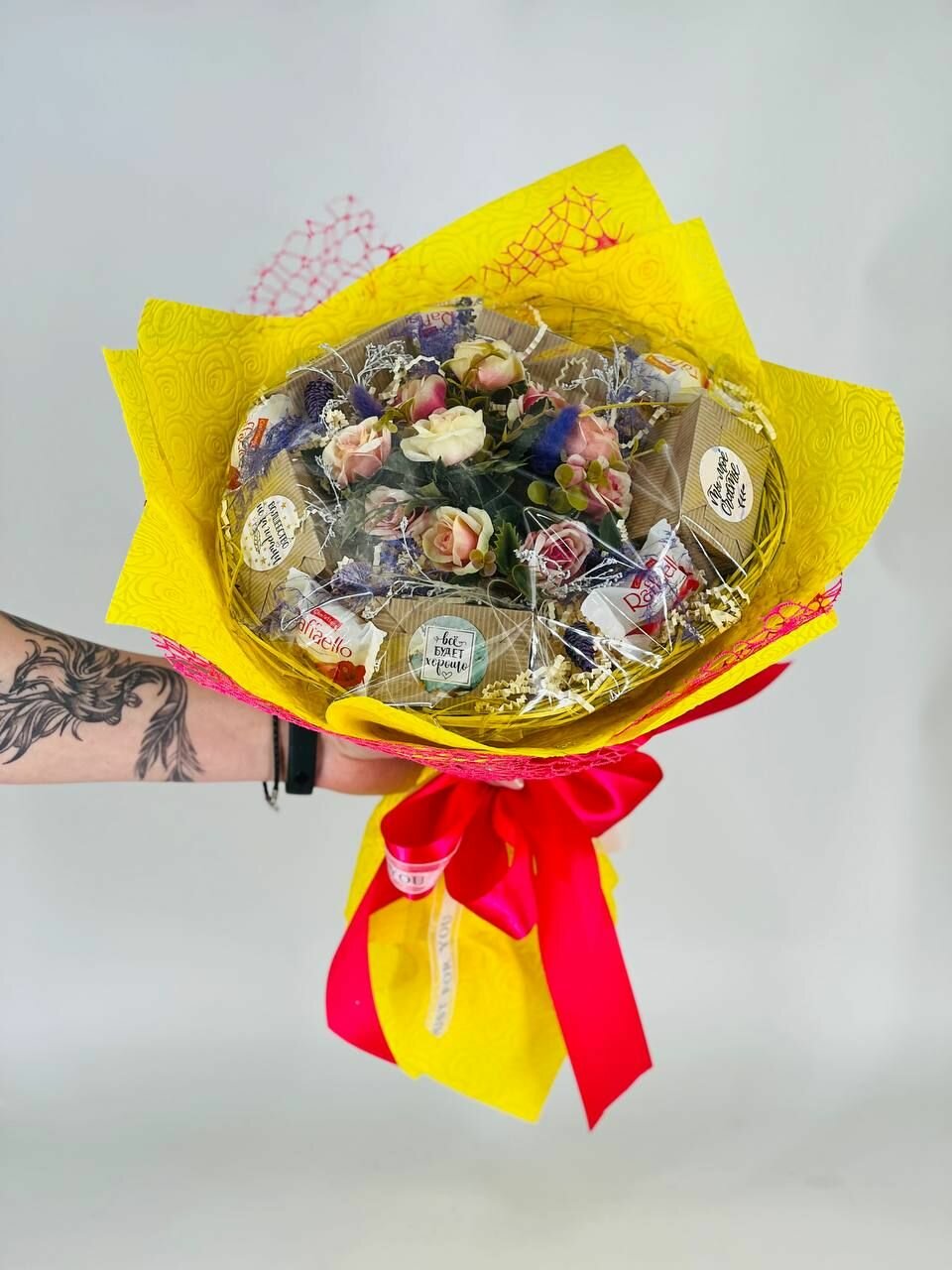Подарочный букет из элитного чая ко дню всех влюбленных и 8 марта, чайно-кофейный букет, чай, кофе