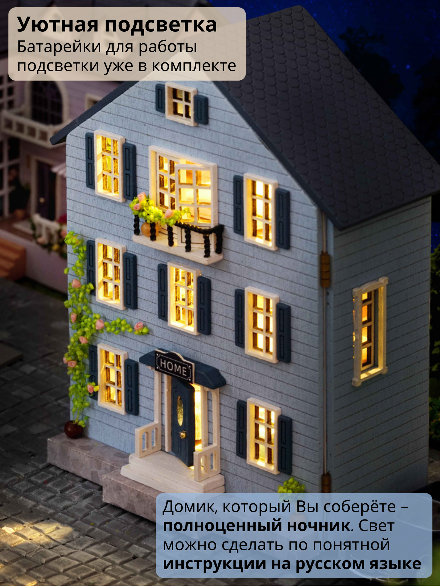 Сборка румбокса – прекрасная медитация, позволяющая отключиться от повседневной рутины. Рукоделие доставит лишь позитивные эмоции, ведь всё необходимое будет под рукой. Готовый домик можно использовать в качестве ночника благодаря уютной подсветке.