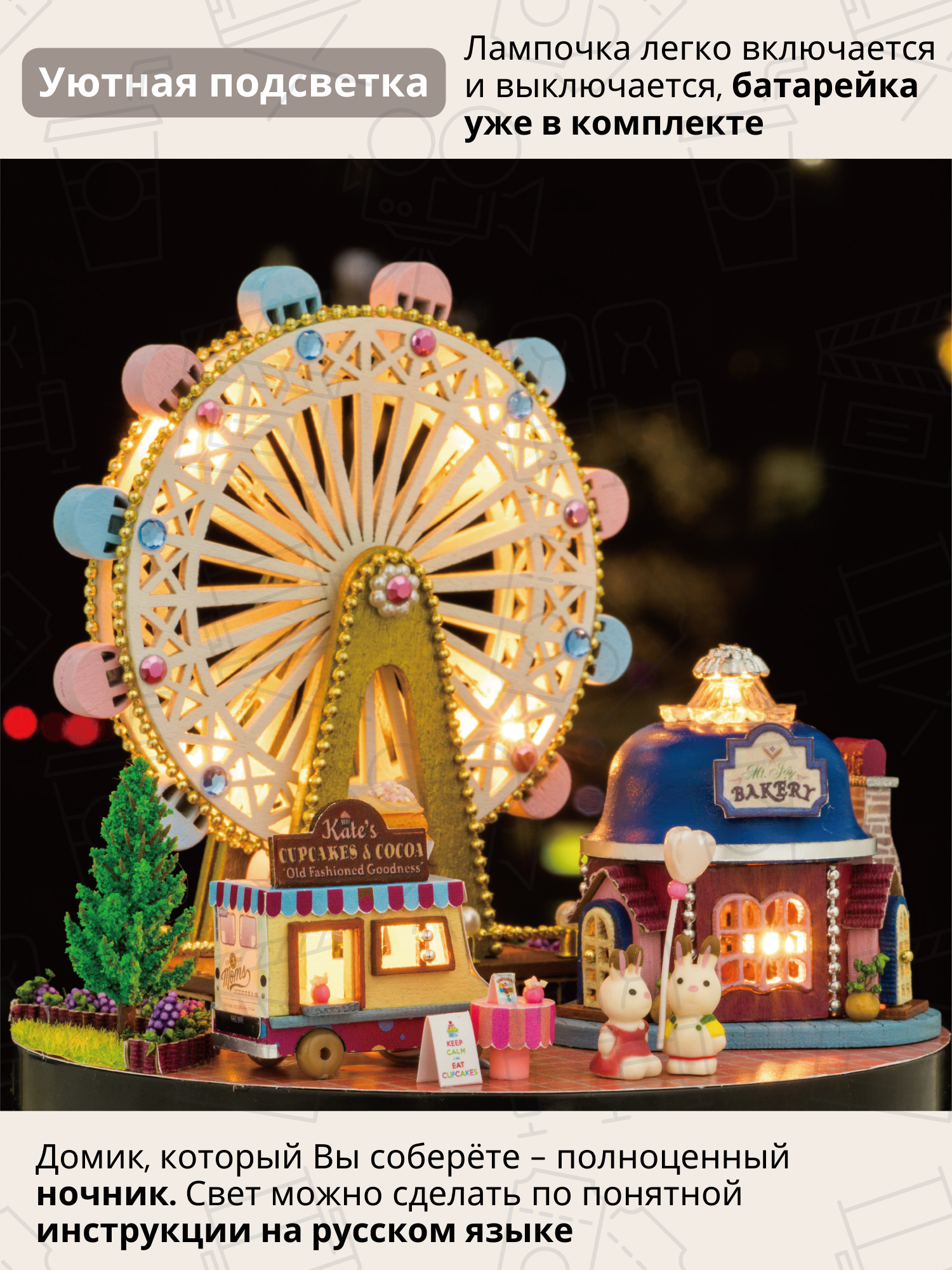 Сборка румбокса – прекрасная медитация, позволяющая отключиться от повседневной рутины. Рукоделие доставит лишь позитивные эмоции, ведь всё необходимое будет под рукой. Готовый домик можно использовать в качестве ночника, а музыкальный механизм, входящий в набор, сделает получившуюся композицию еще более душевной.