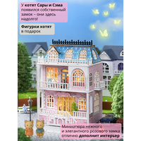 В наборе 230 деталей для сборки: деревянная мебель, ткань, искусственные растения, бусины, кружево, специальный клей, иллюстрированная инструкция на русском языке, пинцет, уютная подсветка, батарейки, фигурки котиков.