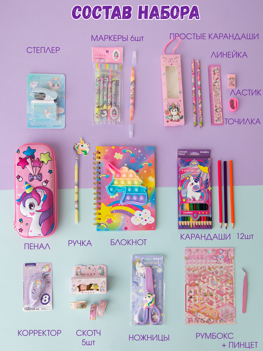 Подарочный канцелярский бокс «Единорог», для девочек, цветные карандаши, блокнот, линейка: сравнение цен, характеристики, фото, актуальное наличие и цены.