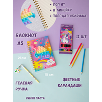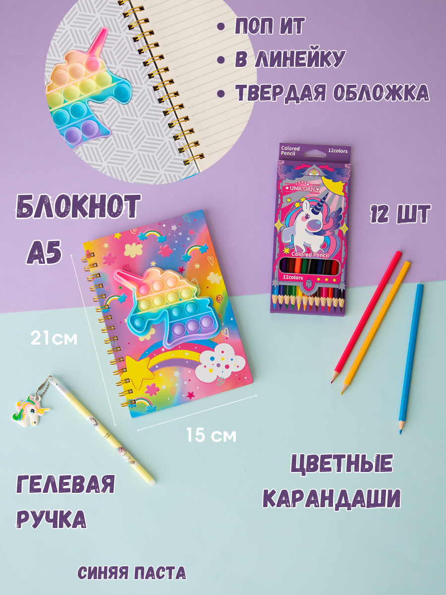 Купить Подарочный канцелярский бокс «Единорог», для девочек, цветные карандаши, блокнот, линейка с доставкой по всей России.