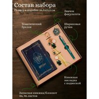 Подарочный канцелярский набор Гарри Поттер Слизерин с блокнотом, закладкой, ручкой, значком, брелком: сравнение цен, характеристики, фото, актуальное наличие и цены.