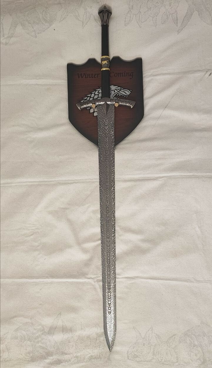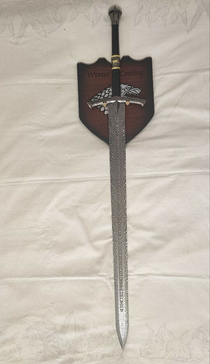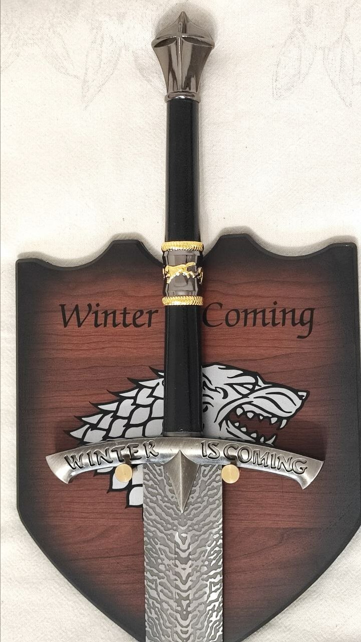 Отличный вариант подарка для любителей сериала, особенно для тех кто импонировал дому Старков. На гарде меча сделана гравировка "Winter is coming", что переводится как - "Зима близко" (лозунг семьи Старков).