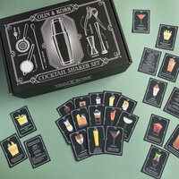 К набору мы создали подробную и сочную инструкцию с описанием инвентаря, рекомендациями по уходу, а также барной карта на 40 коктейлей + 40 карточек с пошаговыми рецептами. Всё доступно, понятно и на русском языке