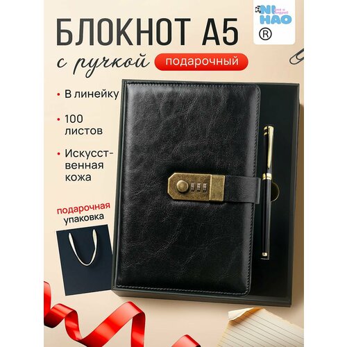 Эргономичный блокнот формата А5 с внутренней разметкой в линейку, 100 прочных страниц (80 г/м²) и элементами безопасности – кодовым замком и закругленными углами защитит важные записи от случайного повреждения. Элегантная обложка из матовой искусственной кожи дополнена золотыми элементами и зеркальным декором, а петля для ручки сохраняет всё необходимое вместе.