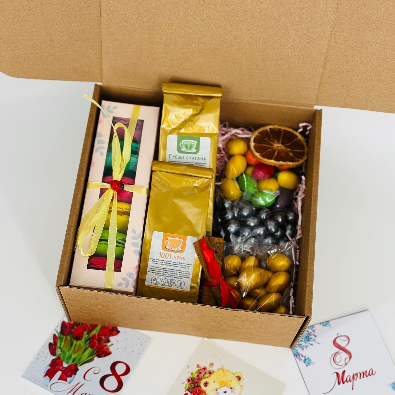 Подарочный набор чая с пирожными макаронс и орехами в глазури, подарок на 8 марта: сравнение цен, характеристики, фото, актуальное наличие и цены.