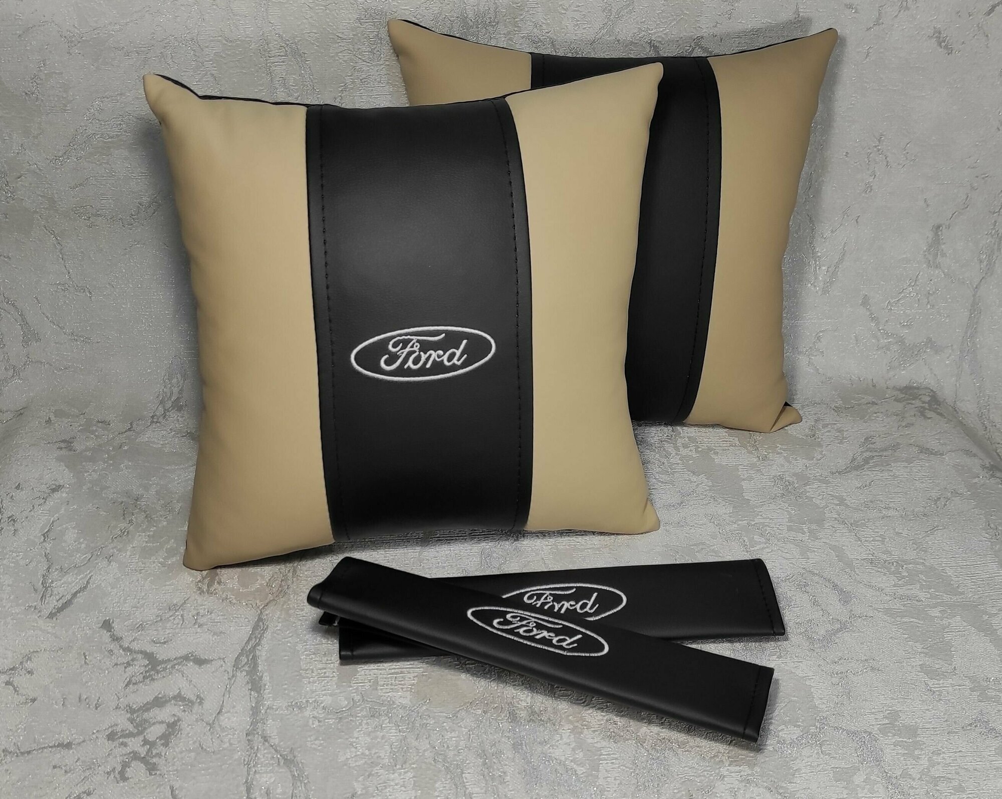 Подарочный набор: декоративная подушка в салон автомобиля из экокожи и накладки на ремень безопасности с логотипом FORD, комплект 3 предмета: сравнение цен, характеристики, фото, актуальное наличие и цены.