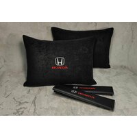 Купить Подарочный набор: декоративная подушка в салон автомобиля из велюра и накладки на ремень безопасности с логотипом HONDA, комплект 3 предмета с доставкой по всей России.