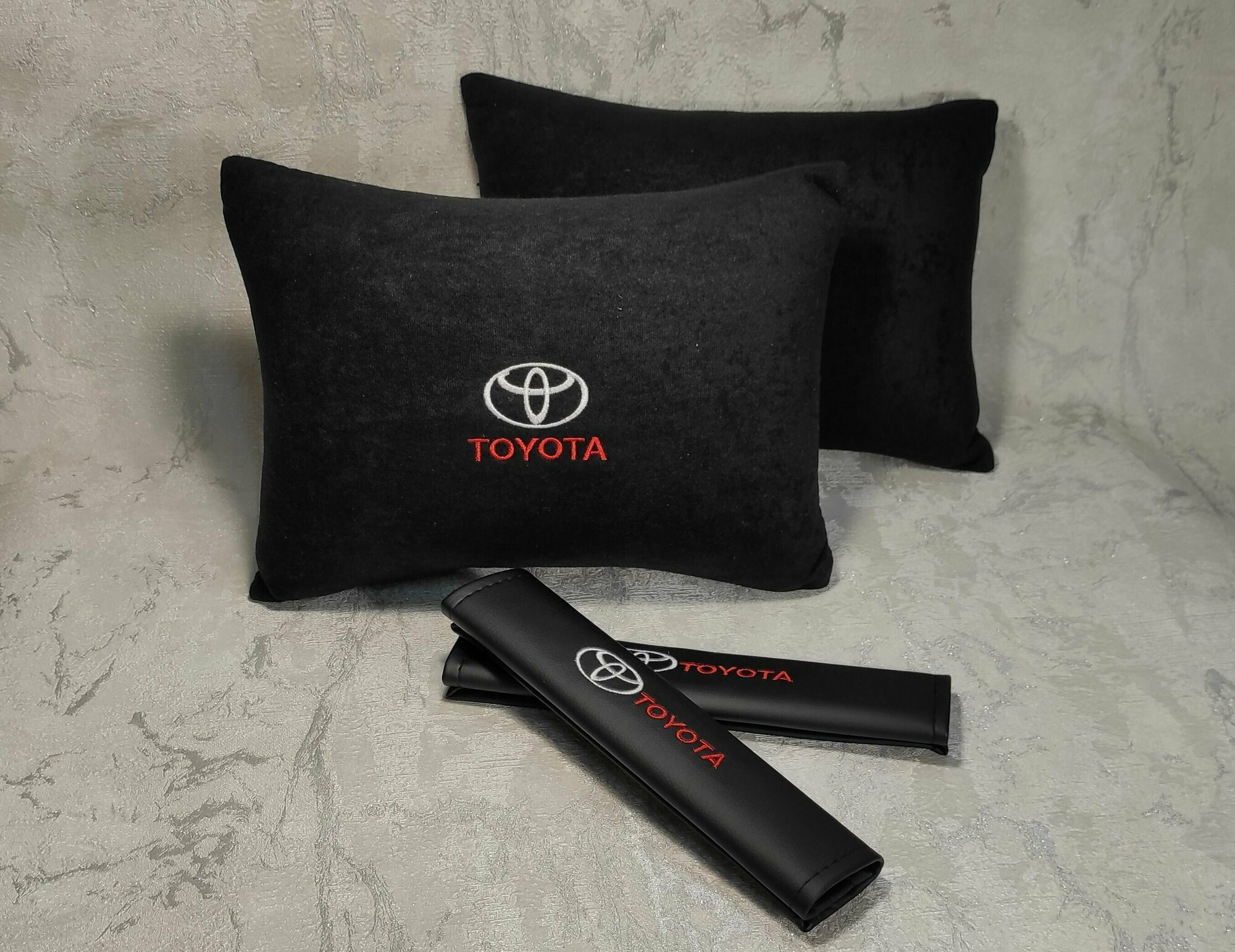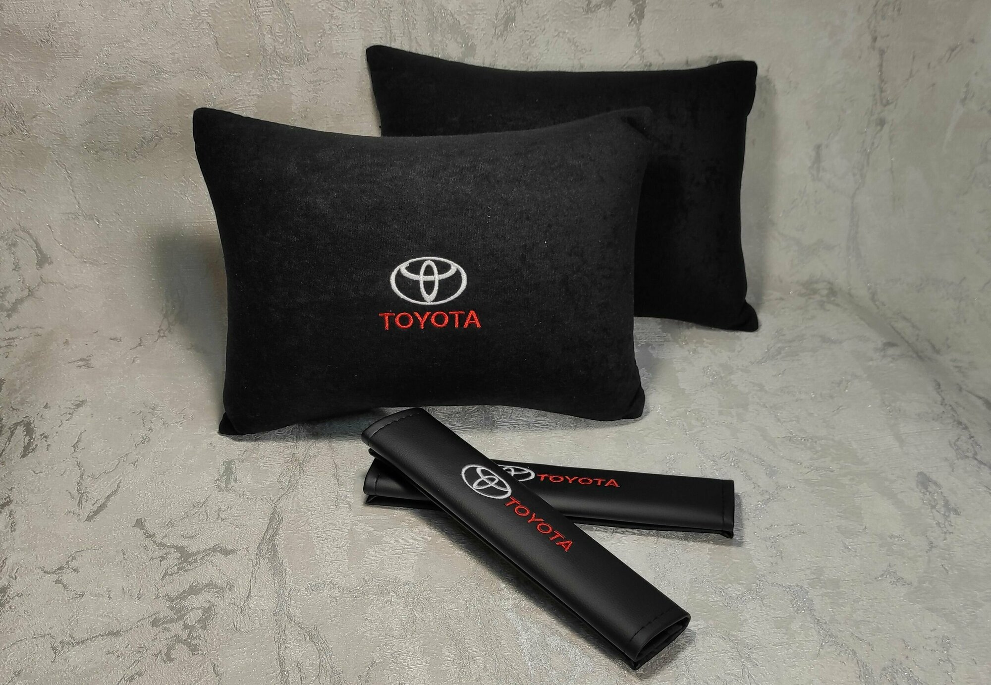 Подарочный набор: декоративная подушка в салон автомобиля из велюра и накладки на ремень безопасности с логотипом TOYOTA, комплект 3 предмета: сравнение цен, характеристики, фото, актуальное наличие и цены.