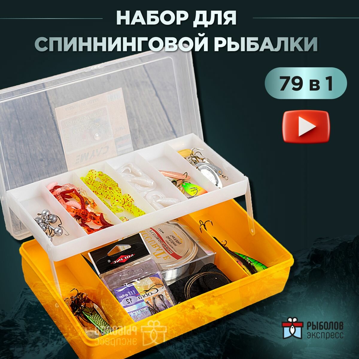 Универсальный рыболовный летний набор для рыбака, где есть все необходимые аксессуары для рыбалки как для рыбака новичка, так и для опытных профессионалов! Данный набор Standart Spin для спиннинговой рыбалки состоит из 79 предметов: короб для рыболовных аксессуаров, мультитул, 30 приманок, 5 вращающихся блесен, 5 колеблющихся блесен, 2 воблера, 10 крючков, леска 100м, упаковка застежек, 3 чебурашки, 3 джиг-головки, 3 офсетных крючка, 5 поводков, ножницы. Рыболовные снасти подобраны профессиональными рыболовами из России!
