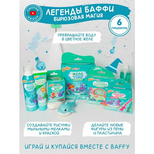 Вау-эффект от этого детского набора BAFFY просто зашкаливает! Средства для купания и игр в ванной превращают купание в яркую вечеринку и развеселить каждого маленького непоседу. Большой набор "Легенды Баффи. Бирюзовая магия" для мальчиков включает в себя:
