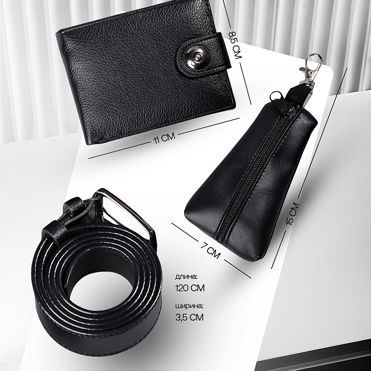 - Так же в подарочный бокс для мужчины входит ключница из экокожи. Ключи не будут болтаться по карману и царапать телефон и други вещи. Размер 15 см на 7см.