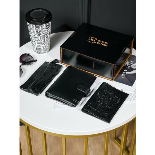 Когда нужно сделать подарок мужчине на день рождения или другой праздник, многие не знают что подарить. Хочется что бы подарок был полезный, а не просто пылился на полке и выглядел презентабельно. Мужской подарочный набор от компании Jetson решает это проблему. У каждого мужчины должен быть кошелек, ремень, обложка на паспорт, ключница и самое главное все должно быть высокого качества. В нашем наборе все изделия из натуральной кожи высокого качества, а упаковано это все в подарочную деревянную коробку. Такой подарок не сможет остаться незамеченным и будет приносить пользу и удовольствие в использовании владельцу.