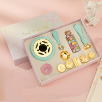 В набор входит деревянная ручка для штампов, ложка для плавления сургуча с деревянной ручкой, сургучница, свеча, а также 6 штампов. Все эти инструменты изготовлены из качественных материалов, таких как дерево, стекло, воск и бархат.