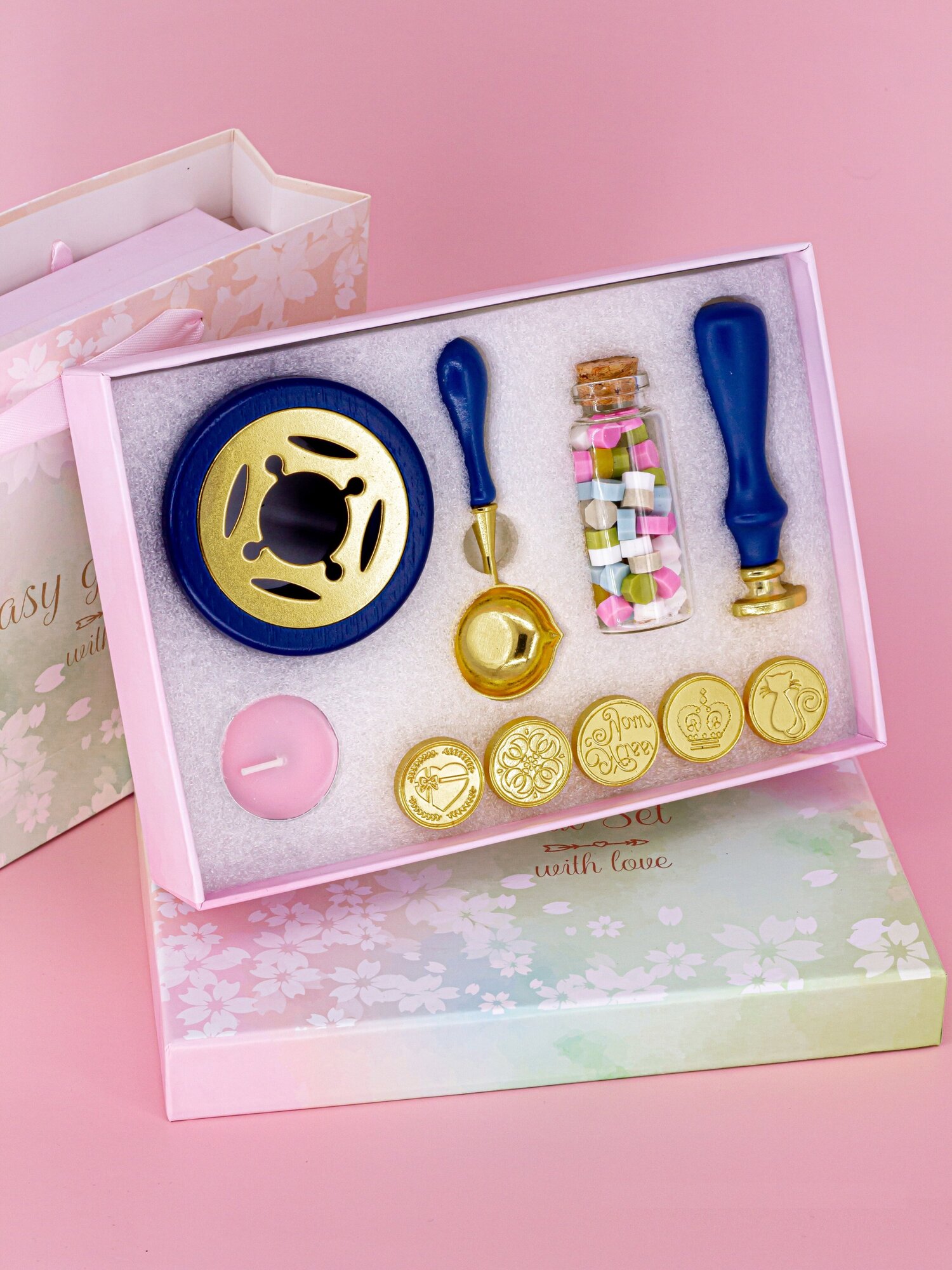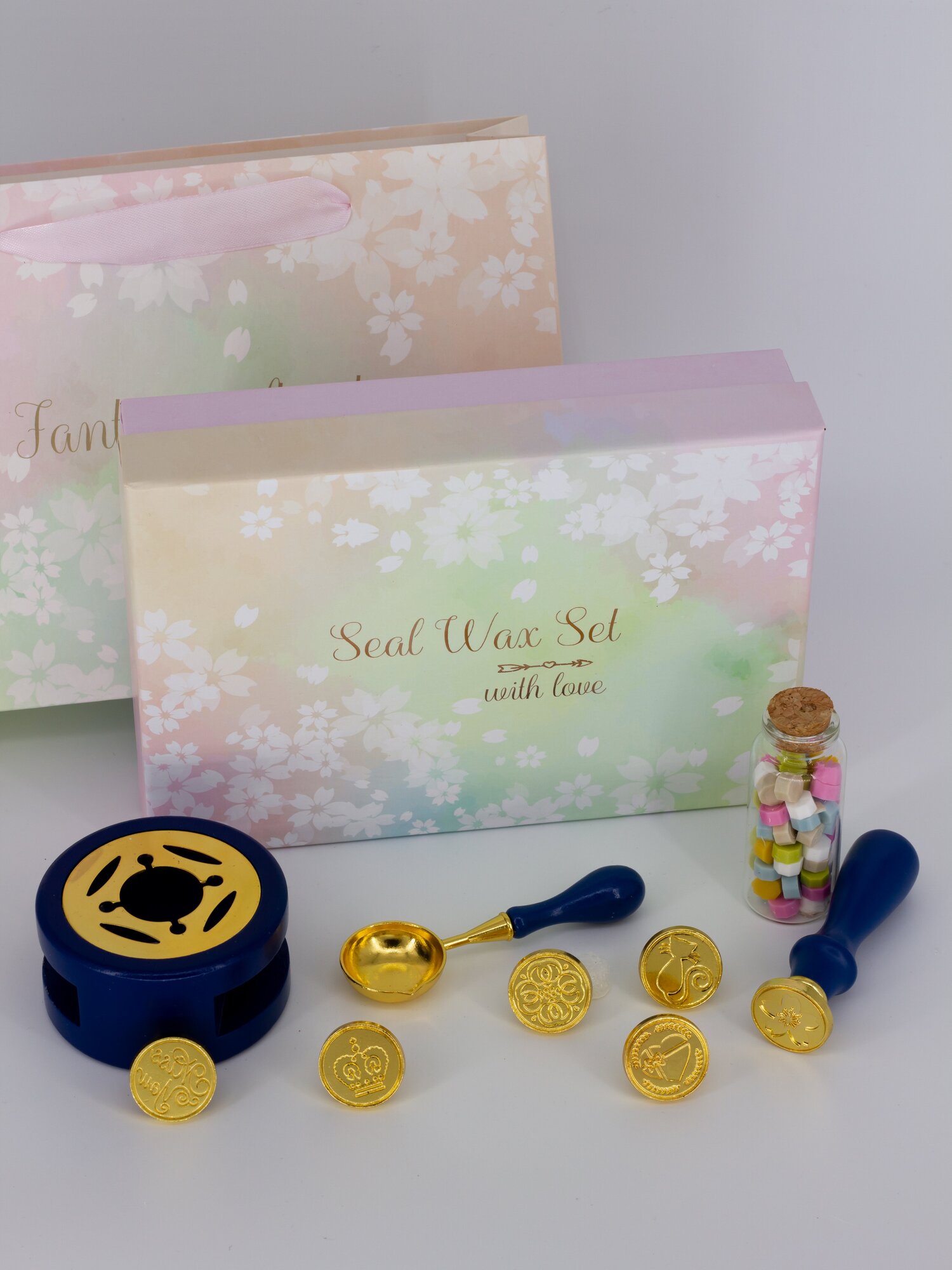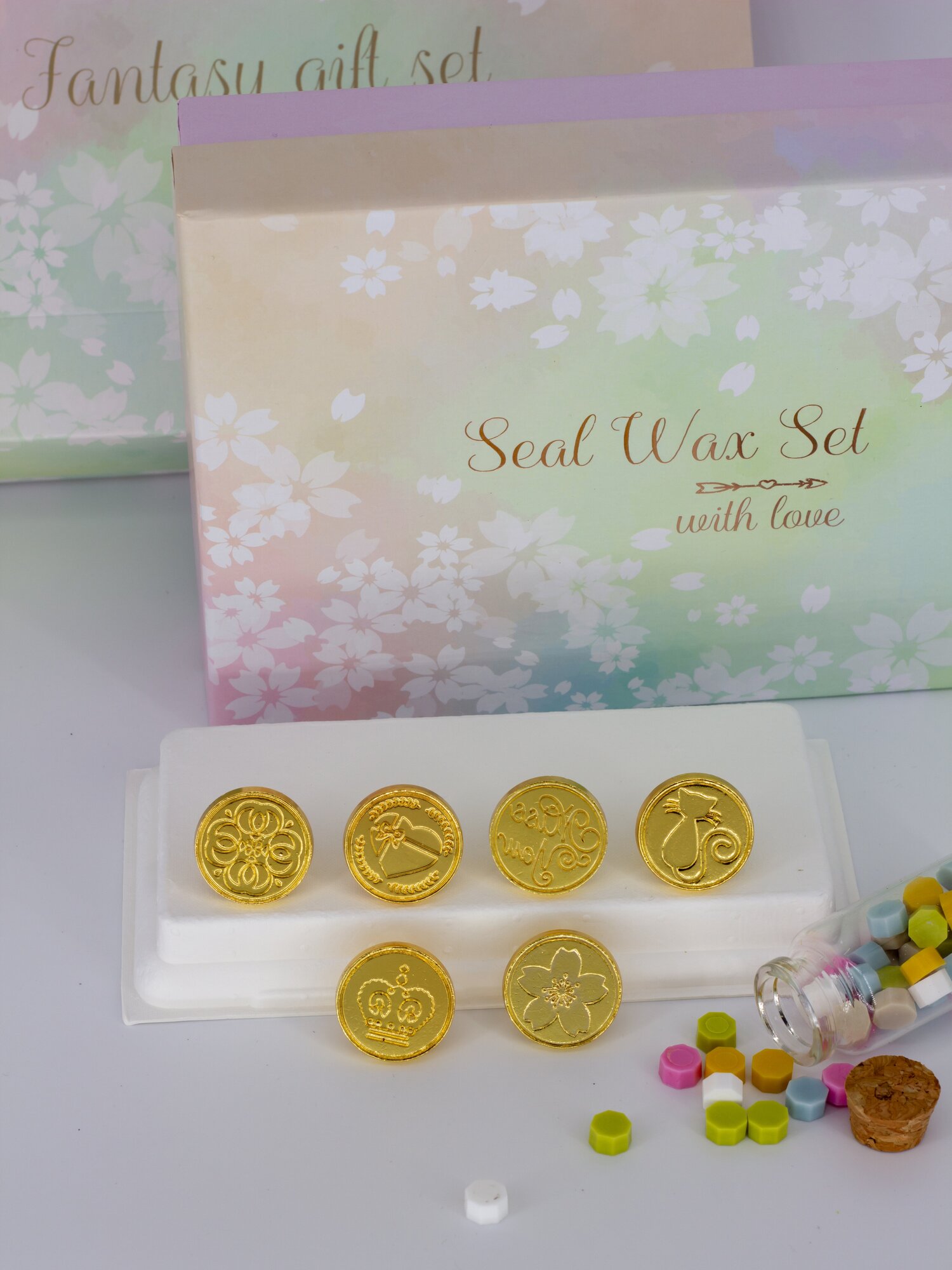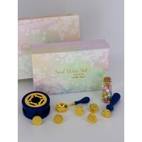 Подарочный набор для создания сургучной печати : -деревянная ручка для штампов 1шт. -ложка для плавления сургуча с деревянной ручкой 1шт. -сургучница 1шт. -свеча 1шт. -штамп 6шт. -набор разноцветного сургуча в стеклянной банке 50 капсул -подарочная коробка 20см*15см*4см