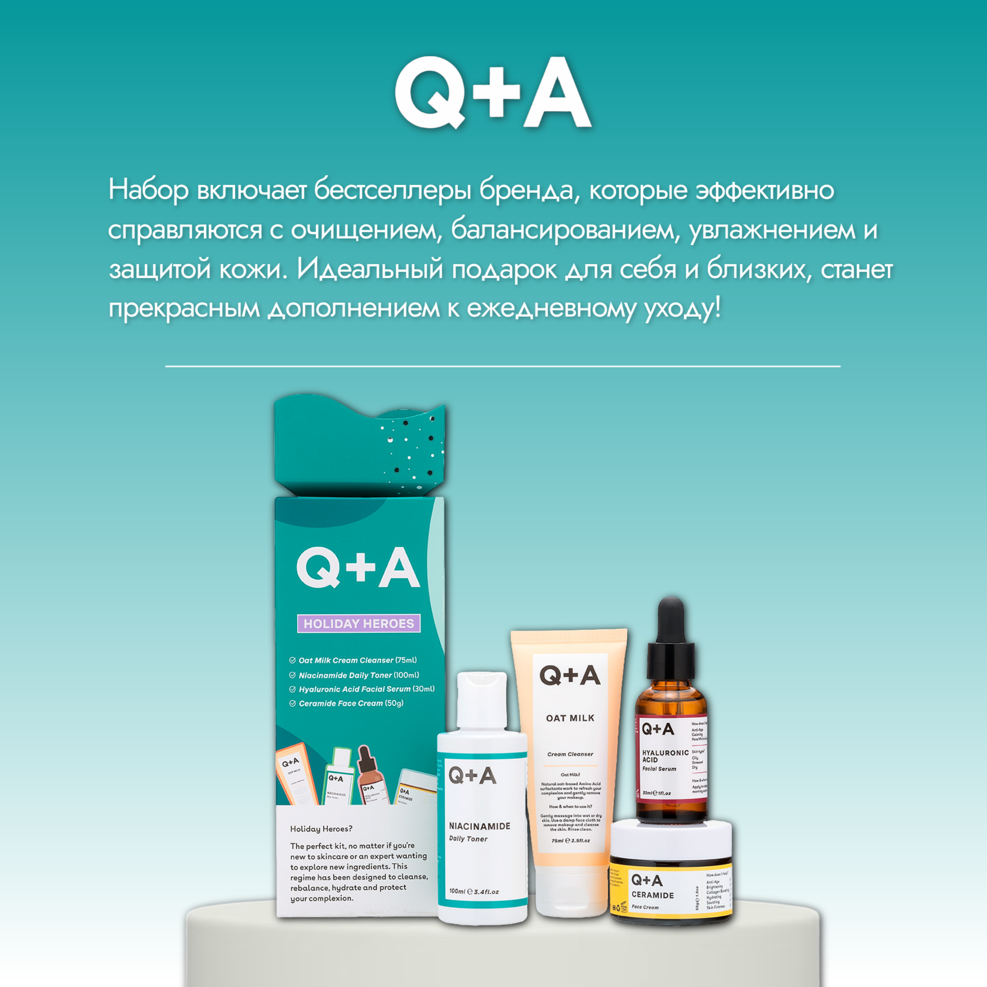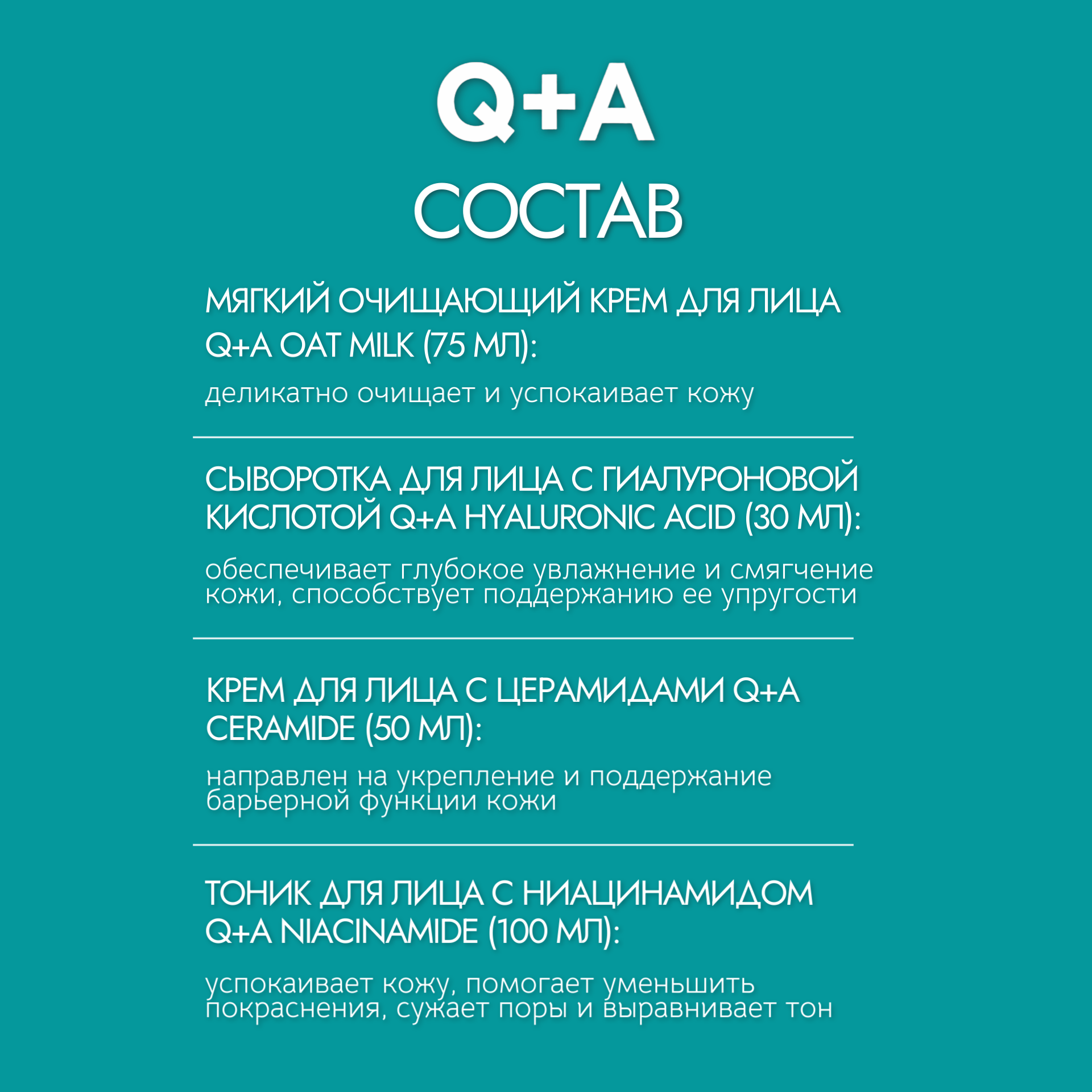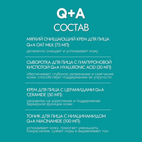 | Состав | Очищающий крем для лица Oat Milk: Aqua (Water), Aloe Barbadensis (Aloe Vera) Leaf Juice, Prunus Amygdalus Dulcis (Sweet Almond) Oil, Cetearyl Alcohol, Sodium Stearoyl Glutamate, Butyrospermum Parkii (Shea) Butter, Glycerin, Sodium Lauryl Oat Amino Acids, Avena Sativa (Oat) Kernel Oil, Avena Sativa (Oat) Kernel Meal, Prunus Armeniaca (Apricot) Kernel Oil, Theobroma Cacao (Cocoa) Seed Butter, Helianthus Annuus (Sunflower) Seed Oil, Linum Usitatissimum (Linseed) Seed Oil, Benzyl Alcohol, Dehydroacetic Acid, Potassium Sorbate, Xanthan Gum, Sodium Gluconate, Tocopherol, Tetrasodium EDTA, Ethylhexylglycerin, Sodium Benzoate, Phenoxyethanol, Citric Acid. Тоник Niacinamide: Aqua (Water), Aloe Barbadensis (Aloe Vera) Leaf Juice, PEG-6 Caprylic/ Capric Glycerides, Glycerin, Niacinamide, Sodium Hyaluronate, Xylitol, Lonicera Caprifolium (Honeysuckle) Flower Extract, Lonicera Japonica (Honeysuckle) Flower Extract, Betaine, Potassium Sorbate, Sodium Benzoate, Citric Acid. Сыворотка для лица Hyaluronic Acid: Aqua (Water), Propylene Glycol, Betaine, Sodium Hyaluronate, Biosaccharide Gum-1, Caprylyl Glycol, Lactic Acid, Sodium Gluconate, Glycerin, Phenoxyethanol, Sodium Levulinate, Glyceryl Caprylate, Sodium Anisate, Xanthan Gum. Крем для лица Ceramide: Aqua (Water), Glycerin, Cetearyl Alcohol, Glyceryl Stearate, Caprylic/Capric Triglyceride, Helianthus Annuus (Sunflower) Seed Oil, Vitis Vinifera (Grape) Seed Oil, Ananas Sativus (Pineapple) Fruit Extract, Ceramide NP, Squalane, Carbomer, Simmondsia Chinensis (Jojoba) Seed Oil, Olive Glycerides, Sodium Stearoyl Glutamate, Coco-Glucoside, Benzyl Alcohol, Coconut Alcohol, Sodium Gluconate, Cyclodextrin, Dehydroacetic Acid, Sodium Hydroxide. |
