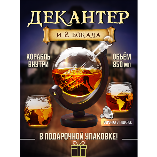 Оригинальный подарок мужчине. Когда приближаются особые даты и события, всегда возникает вопрос о том, как сделать подарок незабываемым. Если вы хотите порадовать своего мужчину или другого близкого вам человека, то наш декантер глобус-оригинальное решение для восхищения и восторга. Декантер - это графинчик с крышкой и стаканами, не просто функциональный аксессуар, он обладает неповторимым стилем и придает особую романтику. Ведь когда вы наливаете любимый крепкий напиток из нашего графина, вы погружаетесь в мир приключений, страсти и великих открытий. Наш подарочный набор посуды для крепких напитков состоит из бокалов и штофа на деревянной подставке. В подарок добавили воронку для удобства переливания напитков. Все элементы этого набора сделаны из высококачественных материалов, которые сохранят аромат и вкус вашего любимого напитка на долгое время. Графин для виски коньяка (вина и водки) - это неотъемлемая часть стильного джентльменского образа. Он придает некую аристократичность и выделяет своего владельца среди остальных. Каждый раз, когда вы захотите налить себе или своему гостю стакан виски, вы не просто делаете обычное действие, вы погружаетесь в настоящую историю и создаете уникальную атмосферу. Наш подарочный набор - уникальный подарок сувенир для настоящего мужчины. Он будет сопровождать его вечеринки, семейные торжества, дни рождения, (др), юбилей, на День Военно-морского флота и важные моменты жизни. Этот прикольный подарок на 23 февраля любимому мужу, брату, отцу, начальнику, коллеге, парню, другу, станет символом силы, стиля и вкуса ваших отношений. Если вы хотите произвести впечатление и удивить вашего близкого, или руководителя, декантер для алкоголя-это то, что вам нужно. Он станет не только практичным предметом, но и настоящей историей, которую вы сможете рассказывать своим гостям, выражением вашей заботы и внимания к тому, что ценит ваш мужчина. Каждый раз, когда он будет использовать наш декантер, он будет вспоминать о вас и вашем великолепном подарке. Пусть ваше внимание и любовь никогда не исчезают!