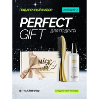 Состав подарочного набора из 2 предметов: 1. Профессиональный многофункциональный спрей термозащита для волос Magic Hair Curl THERMO SPRAY Idol 180 мл 2. Расческа золотая массажка