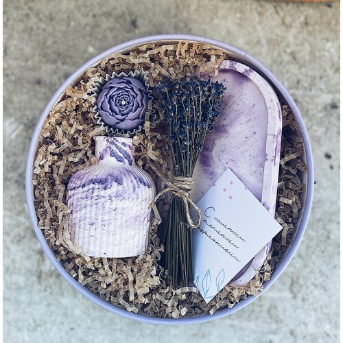 Яркий и красиво оформленный подарок, который действительно удивит и порадует близкого человека на любой праздник! Идеален для мамы на день рождения. Подарочный набор для жены, подруге, сестре и в качестве корпоративного подарка партнерам и коллегам. Состав подарочка оригинальный и практичный: ваза из гипса ручной работы, ваза для сухоцветов, поднос из гипса ручной работы, поднос для украшений, поднос для свечей, поднос для диффузора, открытка, соевая свеча ручной работы "пион", букетик из сухоцветов лавандовый, круглая коробка 21*21*8см с бумажным наполнителем, и бантом. Все это в стильной крафт-коробочке, бант. Каждый бокс дополнительно упакован в защитную коробку для надежной защиты подарка от повреждений! ! Оригинальный подарок ручной работы