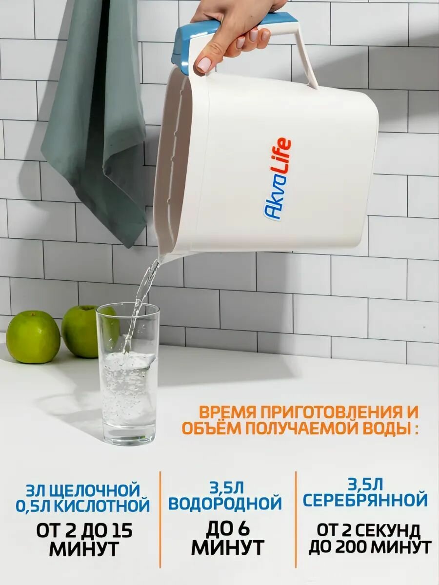 Бытовой активатор Аквалайф объёмом 3.5 литра 4 в 1 с функцией генератора водорода и приготовления серебряной воды: эффективное решение для здоровья и комфорта вашего дома! Ионизатор очиститель воды также способен изменять pH-уровень воды, делая ее щелочной или кислотной. Щелочная вода обладает рядом полезных свойств: она помогает нормализовать обмен веществ, улучшает работу пищеварительной системы и повышает иммунитет. Кислотная вода, в свою очередь, может использоваться для местной обработки кожи, улучшения состояния волос и ногтей.