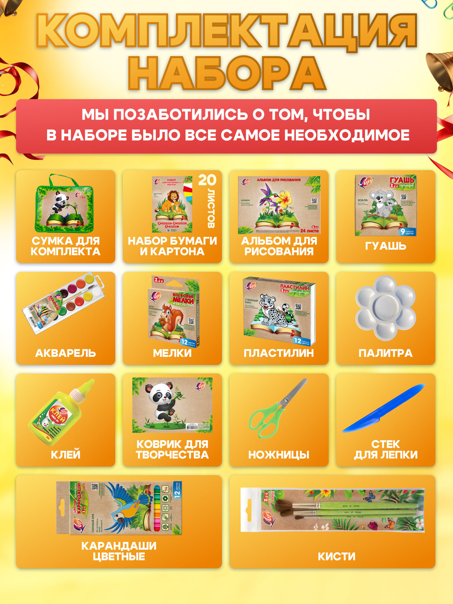 Купить Подарочный набор канцелярия для школы Луч 14 предметов в сумке / набор школьника / набор первоклассника в школу с доставкой по всей России.