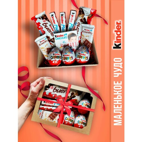Сладкий подарочный набор Kinder Surprise - это отличный подарок для детей и взрослых, которые любят вкусняшки. Этот набор сладостей упакован в элегантную коробку с красивой ленточкой, которая служит не только для подарочной упаковки, но и олицетворяет эстетические качества этого набора.