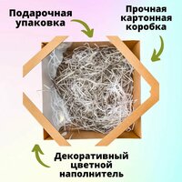 Коробка из плотного картона декорирована бантом из атласной ленты и бережно сложена в транспортировочную коробку для безопасной перевозки до покупателя.