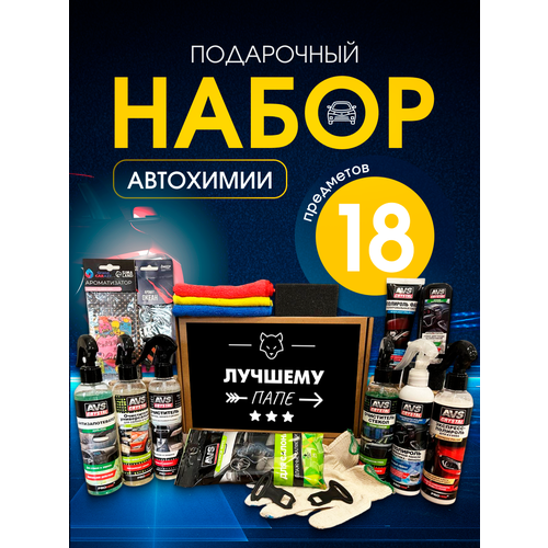 Набор автомобилиста - оригинальный и практичный подарок. Автотовары можно подарить мужчине, мужу, коллеге, сыну, отцу на день рождения, юбилей или порадовать себя и близких без повода. Подарочный набор автонабор для ухода за автомобилем подойдет для повседневного использования, которой пригодится каждому владельцу авто. В комплекте 18 предметов премиальной автокосметики. В дорожный набор входят очиститель стекол, очиститель винила, полироль для фар, экспресс-полироль, очиститель универсальный, антизапотеватель, влажные салфетки для чистки салона, полироль для приборной панели. Также в нем имеются тряпки из микрофибры для протирки пыли, 2 ароматизатора с приятным ароматом и губка для чернения шин, губка для ухода за пластиком, перчатки хб, заглушки для ремня безопасности 2 шт. С их помощью можно быстро помыть бампер, зеркала, пластик и багажник машины. Автомобильные средства с антистатическим эффектом придадут блеск при полировке, восстановят внешний вид покрытия, и кроме того - не окажут раздражающего воздействия на кожу рук.