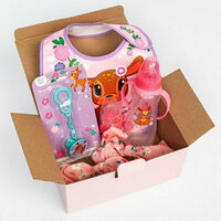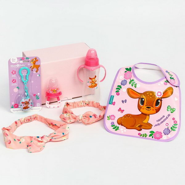 Купить Подарочный набор «Мамы и малыши» 5 в 1: бутылочка, нагрудник, ниблер, держатель для пустышки, набор повязок с доставкой по всей России.