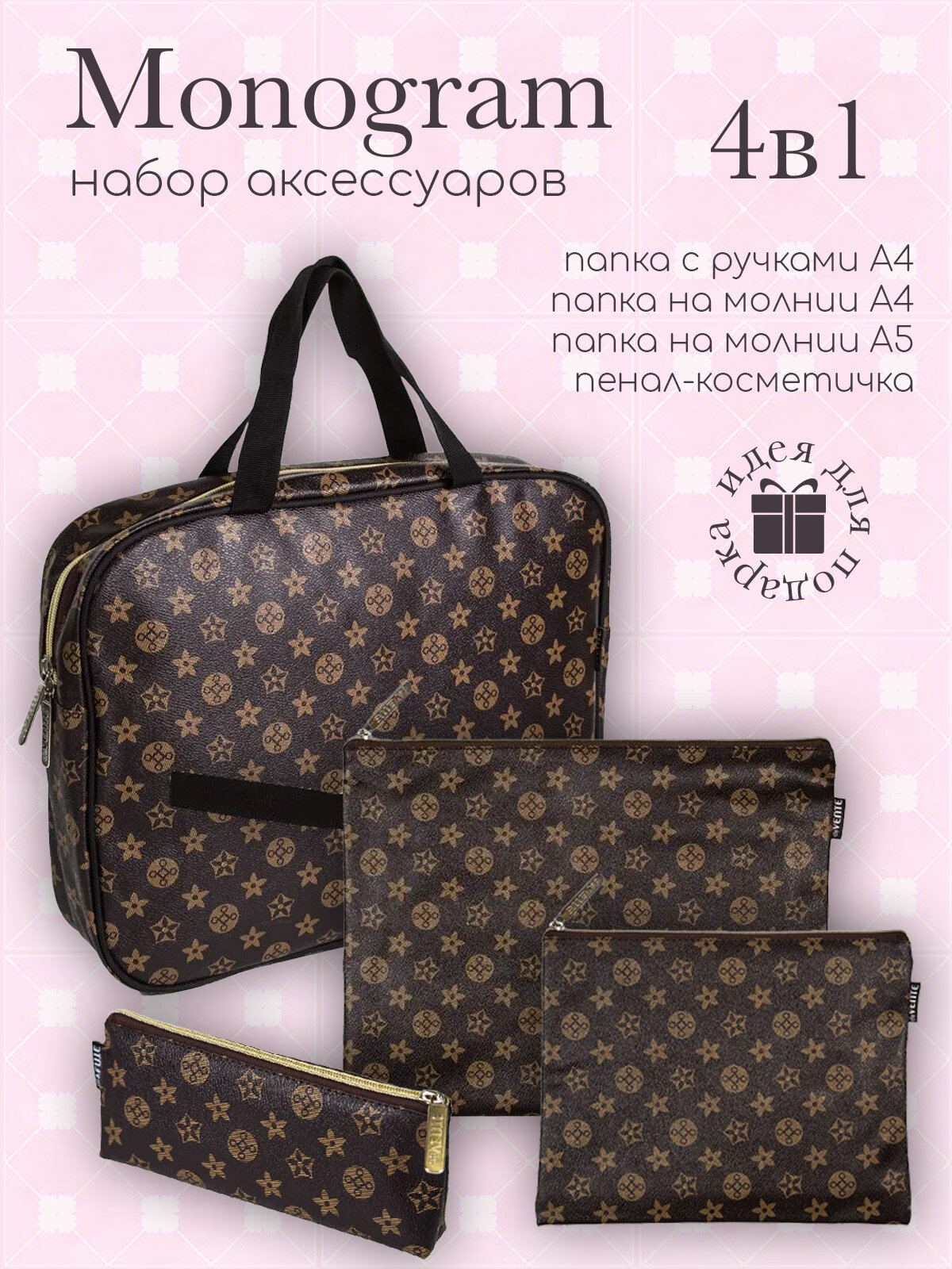 Подарочный набор «Monogram» (папка с ручками А4, для тетрадей и документов А5, на молнии А4, пенал-косметичка): сравнение цен, характеристики, фото, актуальное наличие и цены.