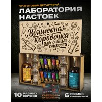 Купить Подарочный набор настоек в бутылках и колбах, рюмки Волшебная коробочка. Подарок на день рождения мужчине и женщине. с доставкой по всей России.