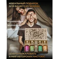 Стопки с бутылями размещены в оригинальной деревянной упаковке - вручную, с любовью. В подарок - стильная карта бара на 16 страниц. В ней собраны рецепты авторских настоек и 50 видов коктейлей, которые вы можете приготовить на их основе. Красивые мужские и женские напитки точно понравятся вам и вашим близким. Станьте настоящим барменом для друзей и семьи!