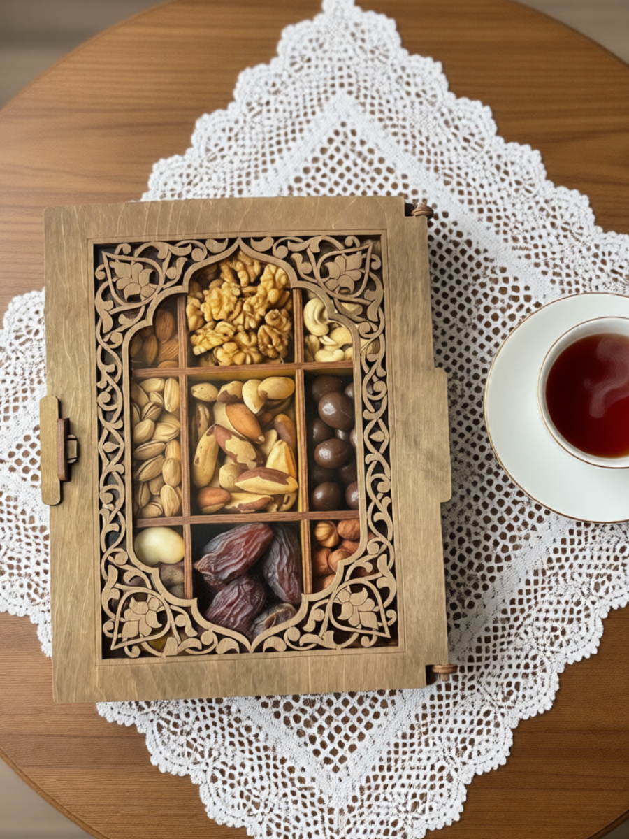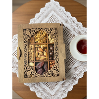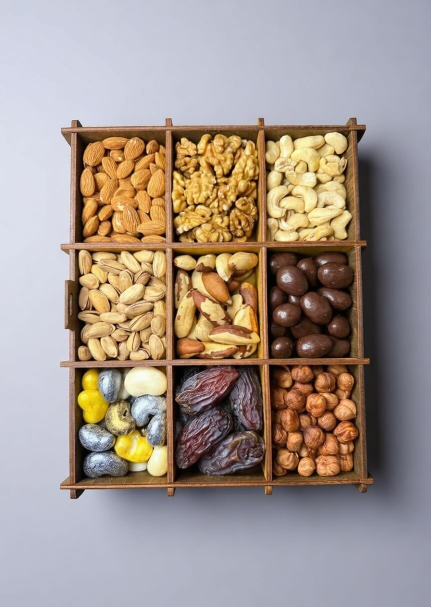 Подарочный набор из девяти видов отборных орехов и сухофруктов в индивидуальной упаковке — это гарантия свежести, качества и наслаждения в каждой детали. Состав и польза: Каждый продукт в наборе не только вкусен, но и полезен: Миндаль – улучшает работу сердца и мозга, богат витамином Е. Грецкий орех – источник омега-3, полезен для сердца и памяти. Кешью – поддерживает иммунитет и кости, даёт энергию. Фисташки – улучшают пищеварение и зрение, снижают холестерин. Бразильский орех – укрепляет щитовидную железу и иммунитет (1–2 шт. в день). Миндаль в шоколаде – антиоксиданты + энергия, но больше калорий. Фундук – полезен для сосудов, кожи и нервной системы. Финики – дают быструю энергию, поддерживают сердце и пищеварение. Содержат антиоксиданты, уменьшают воспаление. Надёжность и удобство Все компоненты упакованы в прочные индивидуальные пакетики, которые не рвутся и не открываются случайно. А благодаря дополнительной транспортной коробке набор доедет до получателя в идеальном состоянии. Идеальный подарок для любого повода. Такой набор — беспроигрышный вариант для тех, кто ценит качество и заботу. Он подойдёт на любой праздник. Кому дарить? Универсальность набора делает его отличным подарком для мамы, друга, коллеги, начальника или близких. Здесь есть всё, чтобы порадовать и принести пользу. Праздник и польза в каждой упаковке С нашим набором вы дарите не только вкус, но и заботу о здоровье. Это возможность создать праздничное настроение и подарить моменты наслаждения с натуральными и полезными продуктами.