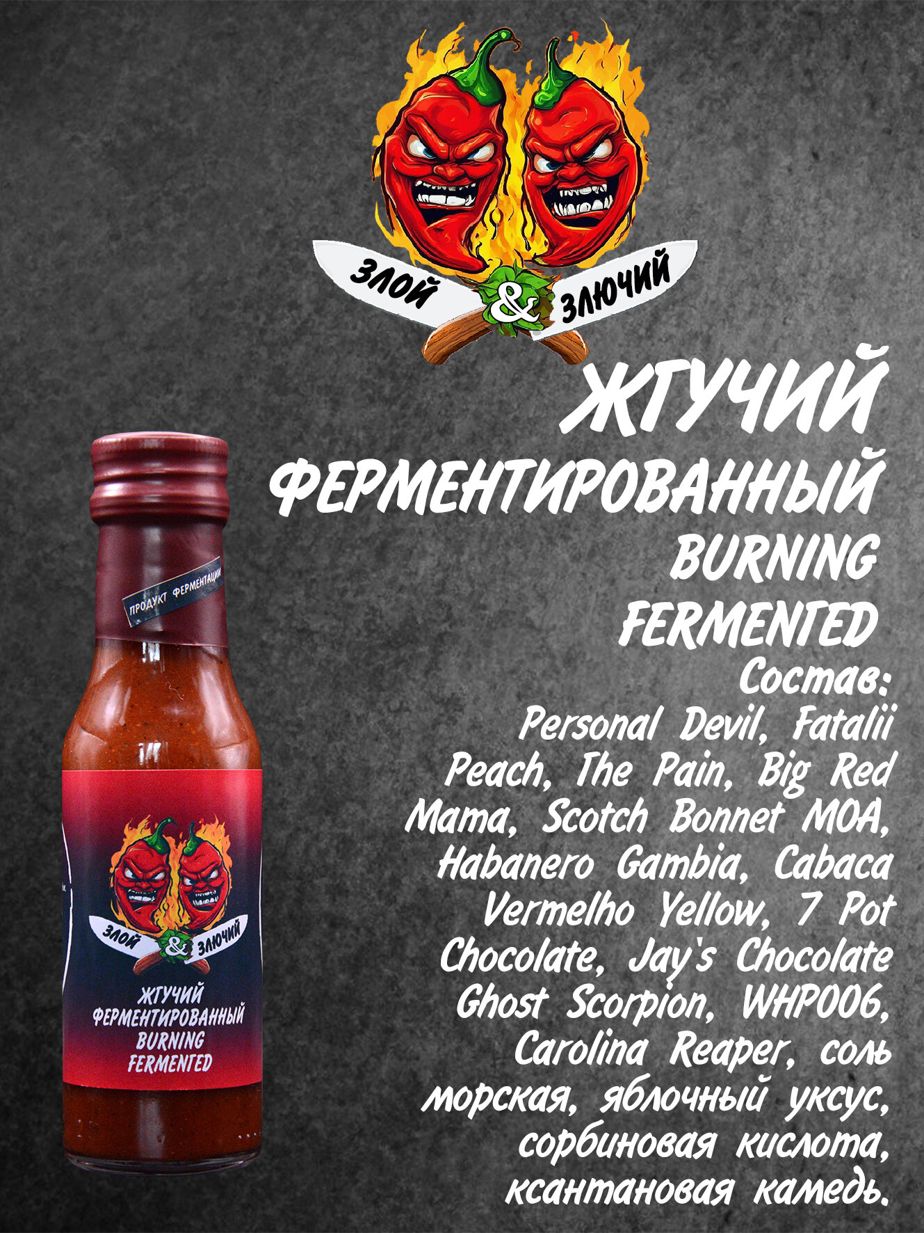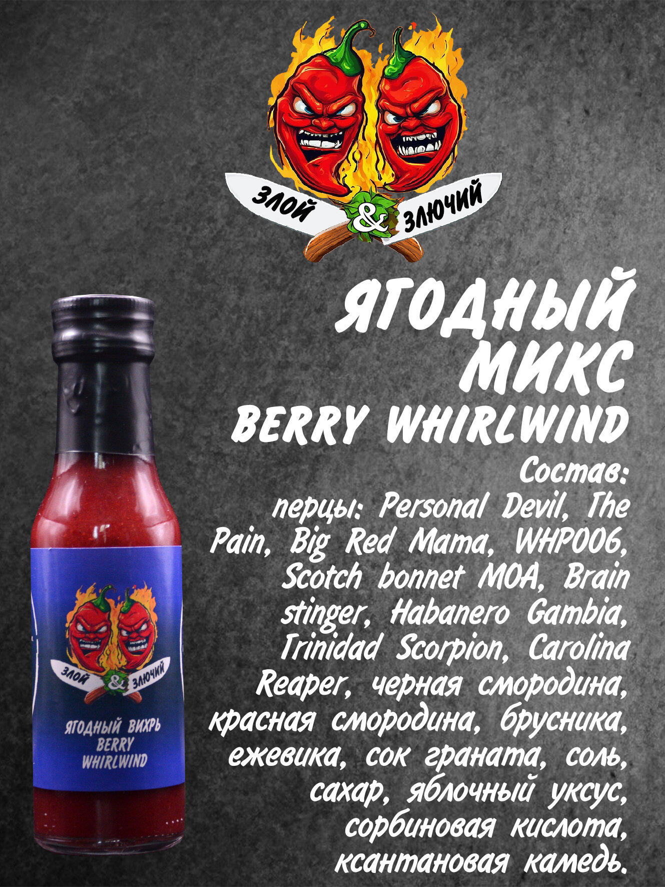 | Состав | Чипотле, персик, апельсин, лимон, мандарин, лайм, киви, мята свежая, чеснок, черная смородина, красная смородина, брусника, ежевика, сок граната, эстрагон, мёд, перцы: Personal Devil, Fatalii Peach, The Pain, Big Red Mama, Scotch Bonnet MOA, Habanero Gambia, Cabaca Vermelho Yellow, 7 Pot Chocolate, Jay's Chocolate Ghost Scorpion, WHP006, Carolina Reaper, соль, сахар, яблочный уксус, сорбиновая кислота, ксантановая камедь. |