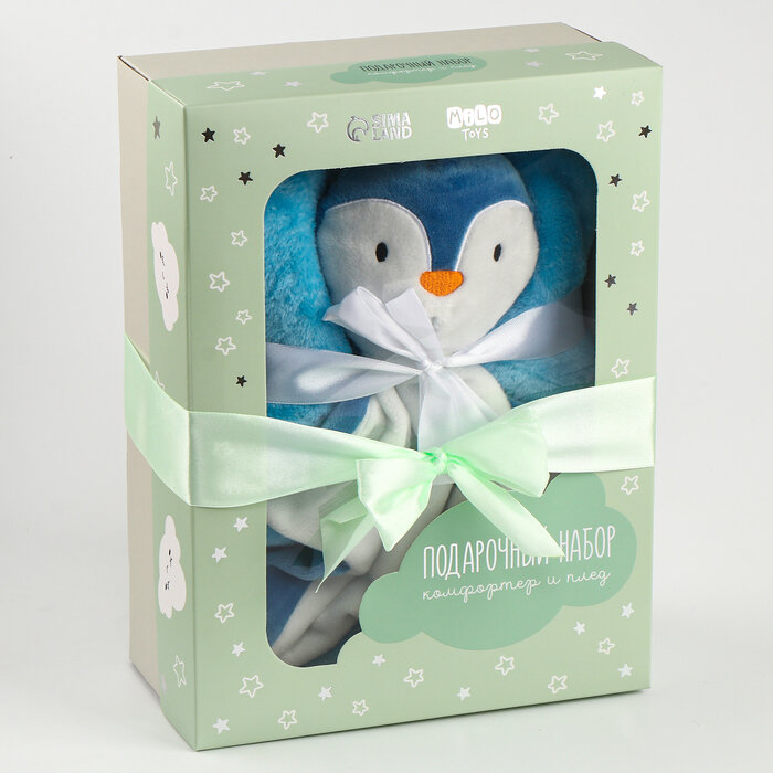 Подарочный набор «Пингвин»: комфортер 27 см + плед 71×125 см: сравнение цен, характеристики, фото, актуальное наличие и цены.