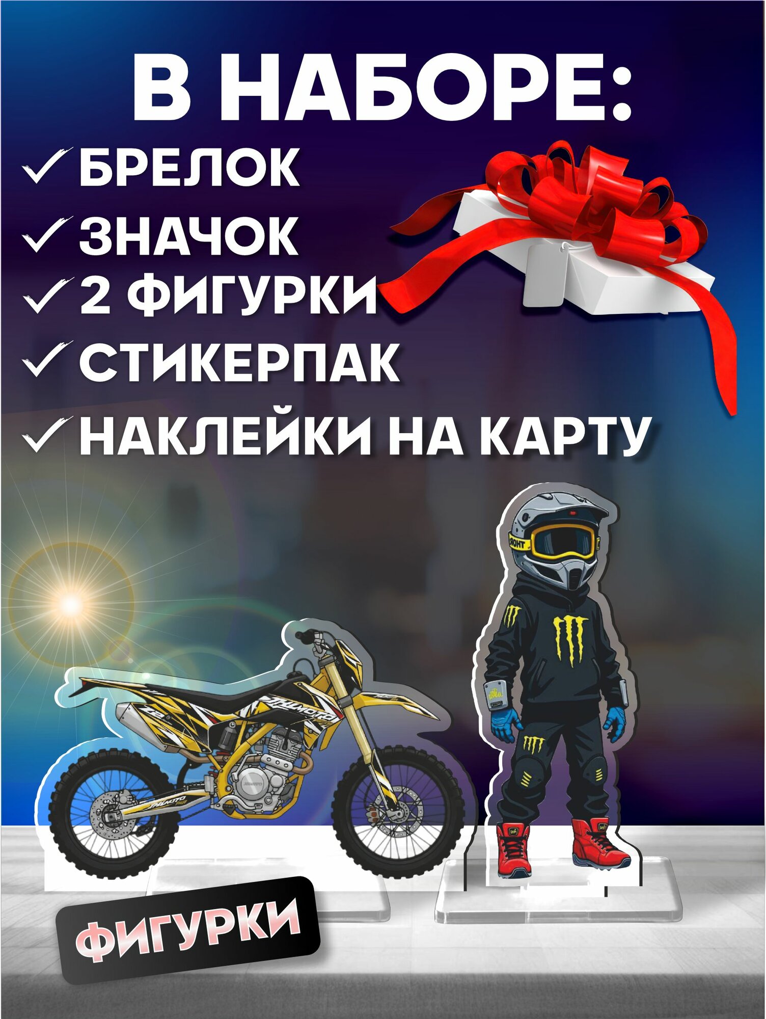 Подарочный набор мотоцикл - идеальный подарок на любой случай! Ищете оригинальный и прикольный подарок для подруги, ребенка, друга? Тогда наш подарочный бокс сюрприз — это то, что вам нужно! Что подарить на день рождения? В нашем подарочном наборе мотокросс вы найдёте всё необходимое для создания неповторимого образа. В состав набора входят: милый брелок для ключей питбацк; фигурка , которая станет украшением интерьера; разнообразные наклейки на телефон , которые помогут выразить вашу индивидуальность; голографическая наклейка на карту , которая добавит изюминку в повседневный образ. Этот подарочный бокс подойдёт как для подарка на день рождения, так и в качестве новогоднего подарка 2025. Он также может стать милым сюрпризом для девочки 10 лет или приятным подарком парню на Новый год. Идея mistery box добавляет интриги и делает его настоящим мистери бокс сюрприз. Также это один из лучших вариантов, если вы не знаете, что подарить подруге на день рождения или ищете новогодние подарки для детей. Не упустите возможность порадовать своих близких оригинальным и прикольным подарком! Закажите наш подарочный набор прямо сейчас и подарите незабываемые эмоции своим близким!