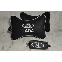 Купить Подарочный набор: подушка на подголовник из велюра и ключница с логотипом LADA, комплект 3 предмета с доставкой по всей России.