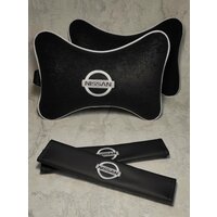Купить Подарочный набор: подушка на подголовник из велюра и накладки на ремень безопасности с логотипом NISSAN, комплект 3 предмета с доставкой по всей России.