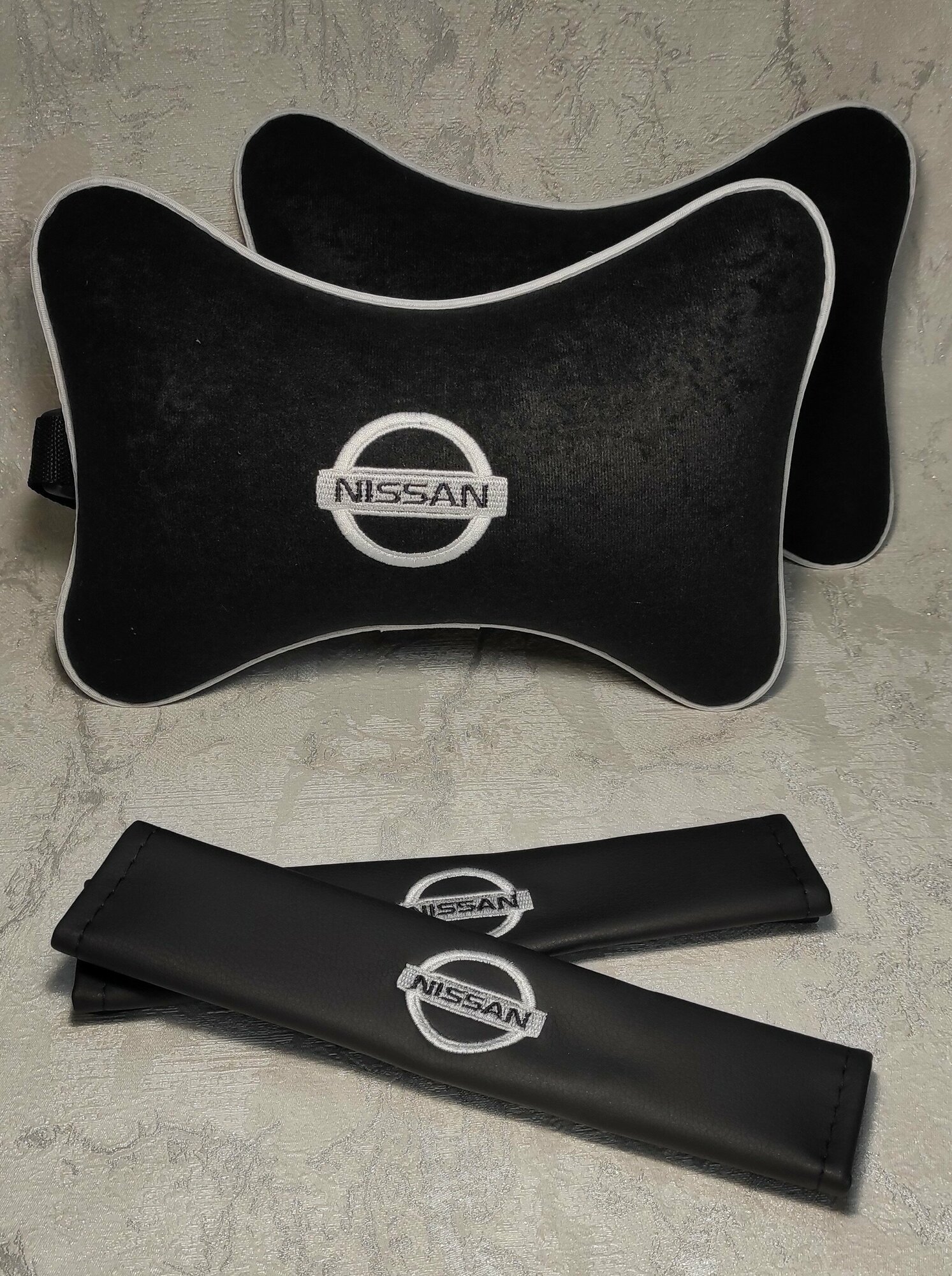 Подарочный набор: подушка на подголовник из велюра и накладки на ремень безопасности с логотипом NISSAN, комплект 3 предмета: сравнение цен, характеристики, фото, актуальное наличие и цены.