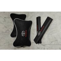 Купить Подарочный набор: подушка на подголовник из велюра и накладки на ремень безопасности с логотипом TOYOTA, комплект 3 предмета с доставкой по всей России.