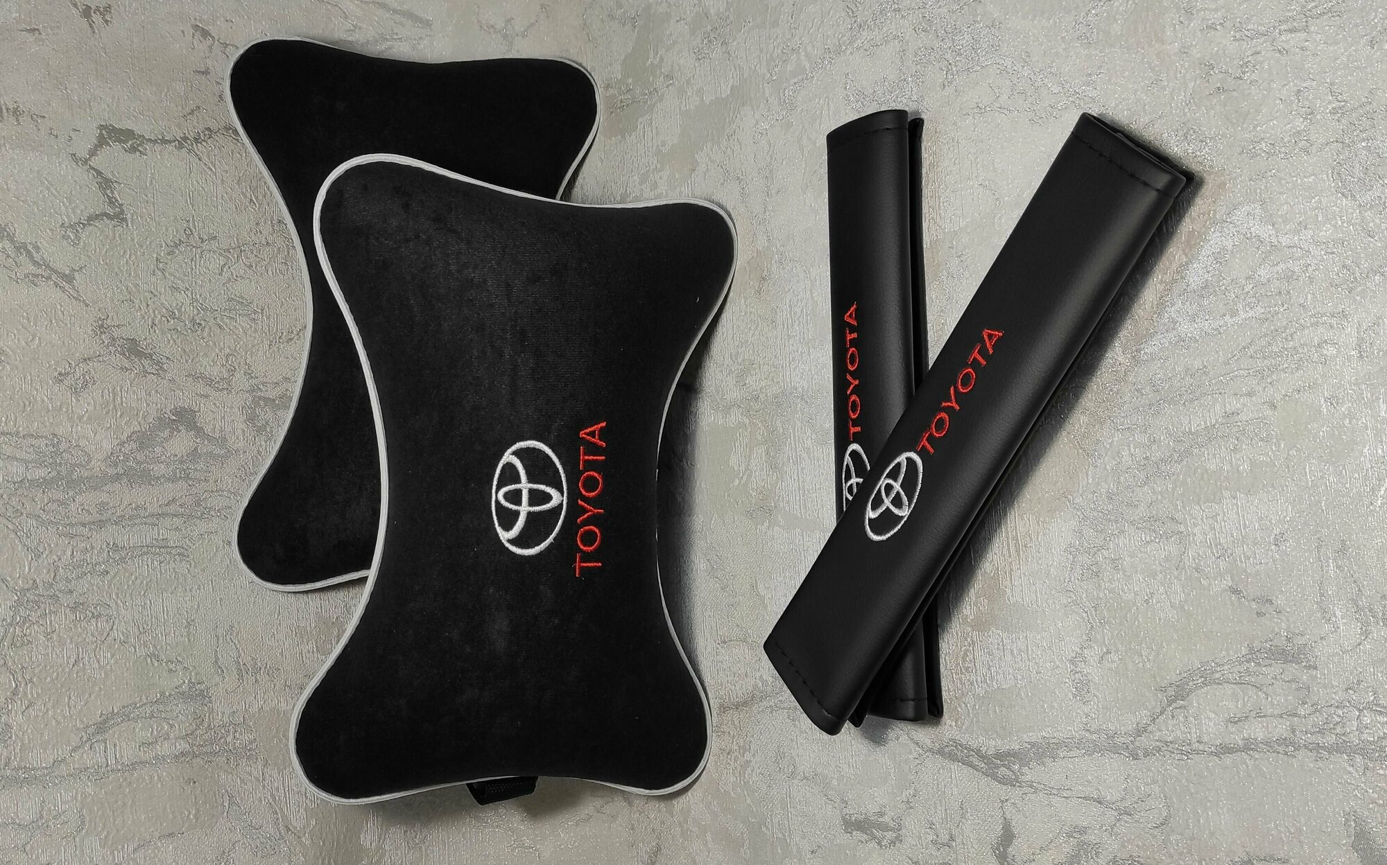 Подарочный набор: подушка на подголовник из велюра и накладки на ремень безопасности с логотипом TOYOTA, комплект 3 предмета: сравнение цен, характеристики, фото, актуальное наличие и цены.