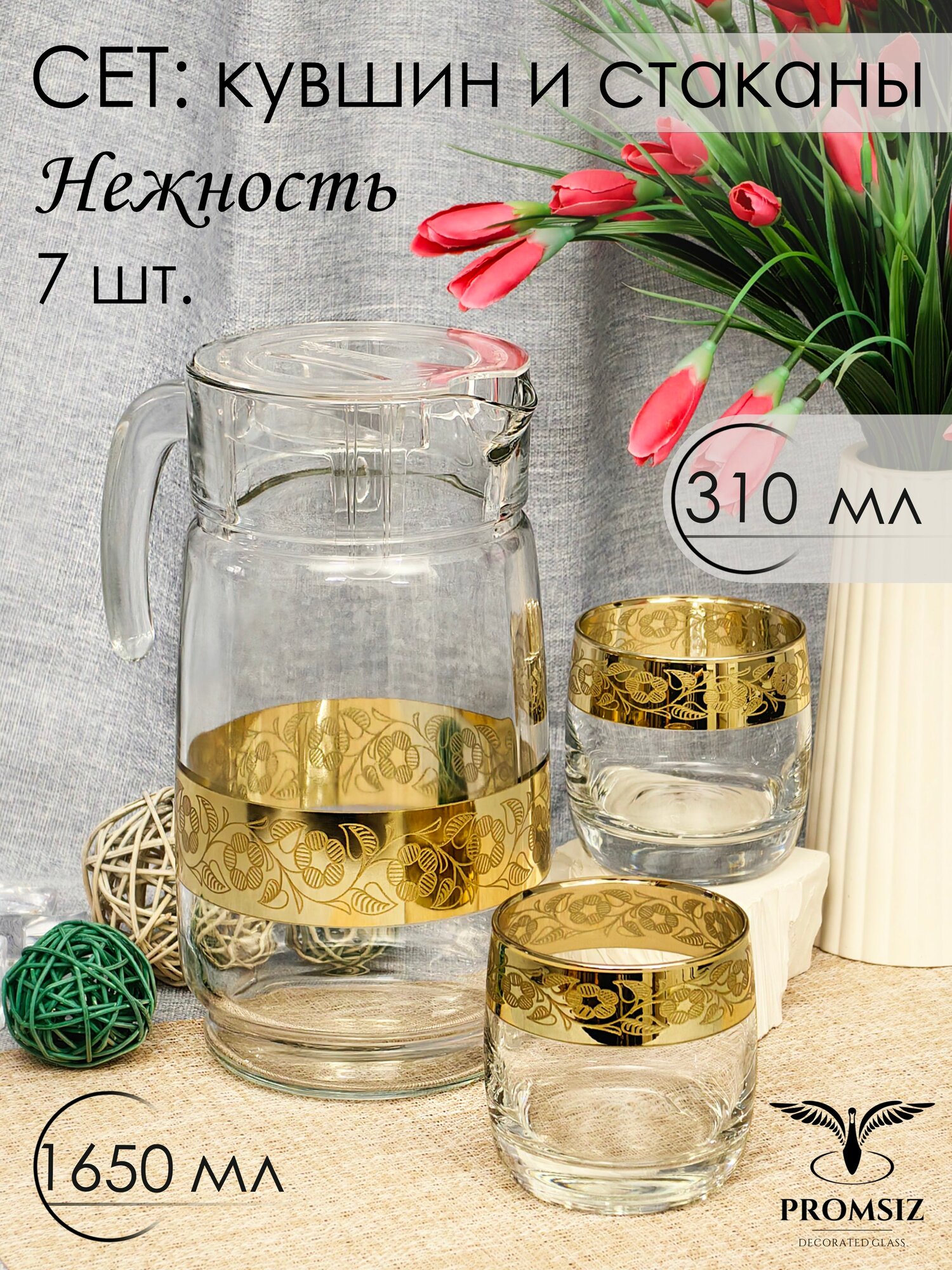 Подарочный набор посуды 7 предметов с алмазной гравировкой PROMSIZ нежность / Кувшин с крышкой для напитков 1650 мл / Стаканы для воды 310 мл 6 шт.: сравнение цен, характеристики, фото, актуальное наличие и цены.