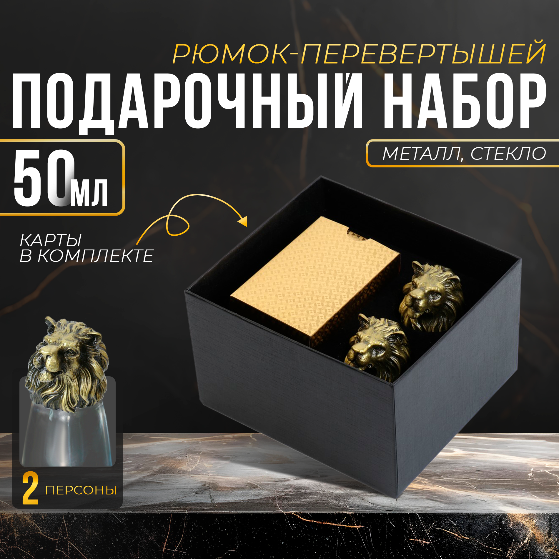Подарочный набор рюмок-перевёртышей 3 в 1 Дарим Красиво «Лев», на 2 персоны, рюмка 50 мл, карты, цвет золотистый: сравнение цен, характеристики, фото, актуальное наличие и цены.