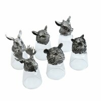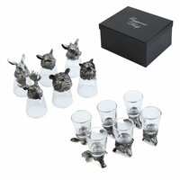 Набор стопок-перевертышей высокого качества с головами животных — оригинальный подарок для охотника, а также будет незаменим на большом дружеском застолье или на охотничьем привале.