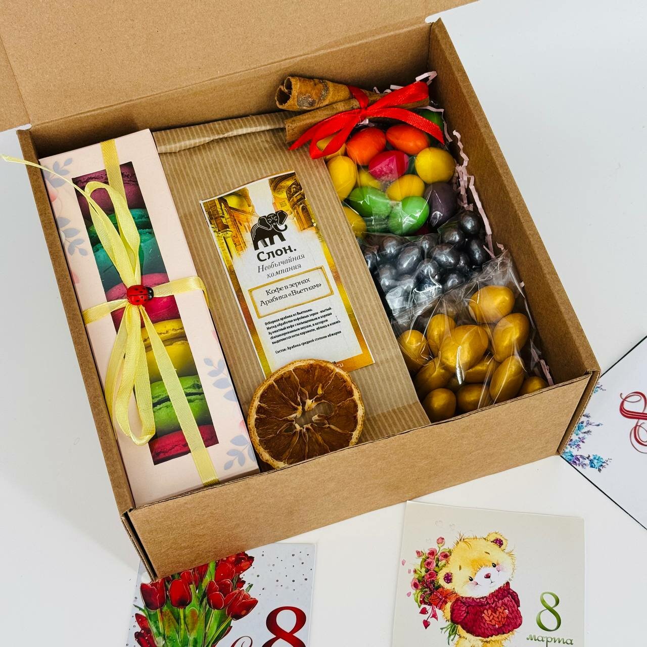 Купить Подарочный набор с зерновым кофе, пирожными макарони и орехами в глазури с доставкой по всей России. Подарочный набор с зерновым кофе, пирожными макарони и орехами в глазури: сравнение цен, характеристики, фото, актуальное наличие и цены.
