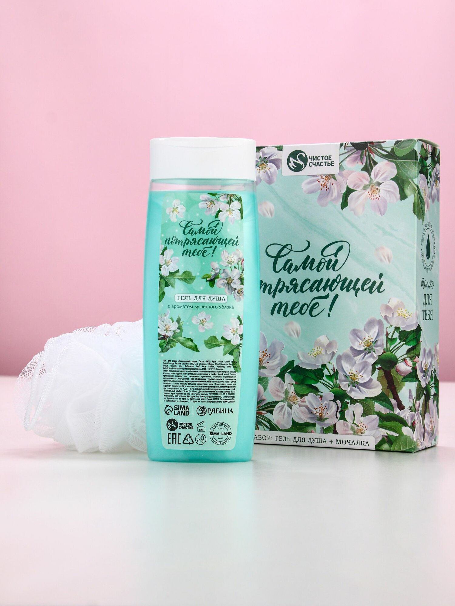 Купить Подарочный набор Самой потрясающей тебе , гель для душа 250 мл и мочалка для тела, аромат яблока, Чистое счастье с доставкой по всей России.