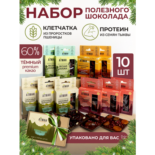 Набор шоколада без сахара из 10 шт. от атман создан для тех, кто ценит вкус, заботится о здоровье и не готов идти на компромиссы. Это прекрасный вариант для сладкоежек, выбирающих темный шоколад, без чувства вины и плюса на весах.