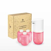 Процесс поддержания собственной красоты и чистоты – очень важный и необходимый ритуал каждого человека, он уже давно вошел в привычку. SimpleWay заботится о том, чтобы привычные вещи стали приносить больше радости. Именно поэтому мыть руки с удобными гаджетами стало еще проще. Автоматический сенсорный умный дозатор для жидкого мыла и три сменных блока по 300 мл в подарочной упаковке – это очень удобная система, которой Вам хватит на долгое время. В блок установлен специальный инфракрасный датчик, когда в зону его действия попадают руки, запускается система подачи пенки и человек получает очередную дозу средства. Датчик срабатывает в среднем на расстоянии 10-15 см от прибора. Жидкое мыло-пенка -невероятно приятное и лёгкое. Диспенсер от SimpleWay станет вашим любимым гаджетом для ванной или кухни, ведь после него не остаются лужицы мыльной воды, и вы обезопасите себя от станет размножения грибка. К тому же стильный дизайн впишется в любой интерьер и удовлетворит вкусы даже самых придирчивых ценителей интерьерных решений. Одно из главных преимуществ автоматического дозатора мыла-пенки в экономичности. Сердцем устройства выступает высокоэффективный электродвигатель, способный создать пенку в достаточном количестве всего за 0,25 секунды, что сравнимо со скоростью реакции человека. Однако, несмотря на подобные мощность и скорость работы, он не нарушает покой и домашний уют, сохраняя тишину. По показателю шума устройство оказывается гораздо ниже, чем прочие приборы на кухне или в ванной, а потому вы не заметите изменений. Диспенсер для мыла SimpleWay выполнен в соответствии с общими требованиями флагмана, не выбиваясь из линейки других устройств. Минималистичный внешний вид, совмещённый с максимальной функциональностью — эта классическая формула остается неизменной. Именно поэтому картридж выполнен полупрозрачным, чтобы вы всегда могли визуально отследить уровень дезинфицирующей жидкости и не столкнуться с её нехваткой. Он изготовлен с использованием экологически чистых материалов, которые не наносят вреда природе и пользователю. Кроме того, он не подаёт мыло напрямую — вместо этого точно откалиброванные датчики и специальная система подачи превращают его в воздушную пену, что позволит использовать блок почти два месяца подряд без покупки нового картриджа. При этом, согласно независимым исследованиям, одно применение уничтожает до 99,9% микроорганизмов, так что подобная экономичность никак не скажется на вашем здоровье. Дополнительные сменные блоки для бесконтактного дозатора мыла станут приятным дополнением к нашему товару, их вы можете найти у нас в магазине, щелкнув на значок нашего бренда. Он подойдет для пользования дома, в офисе, детском саду и школе. Это удобная система, которая чаще всего устанавливается в ванной комнате. Материал – безопасный пластик, который поддается переработке. Для нашей компании важно, чтобы процесс поддержания собственной красоты добавлял удовольствие в вашу жизнь и не вредил окружающей среде. Для замены емкости необходимо открыть сменный блок, вставить его снизу и повернуть по часовой стрелке для надежного закрепления. Подарочный комплект подойдет как женщинам, так и мужчинам на любой праздник.